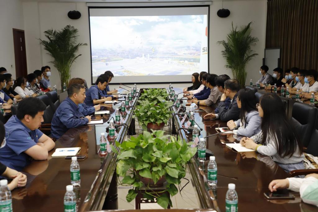 陈炅详细介绍了公司的基本情况、发展历程及特色党建工作。赵丽结合公司十四五计划详细介绍了人才培养方案和实习实践的培养路径,表达了对学院人才培养质量的肯定,希望与学院建立长期合作。随后,温广勇向学生们分享了自己在泰山玻纤的工作经历,为大家传递了执着专注、精益求精、追求卓越的劳模工匠精神。