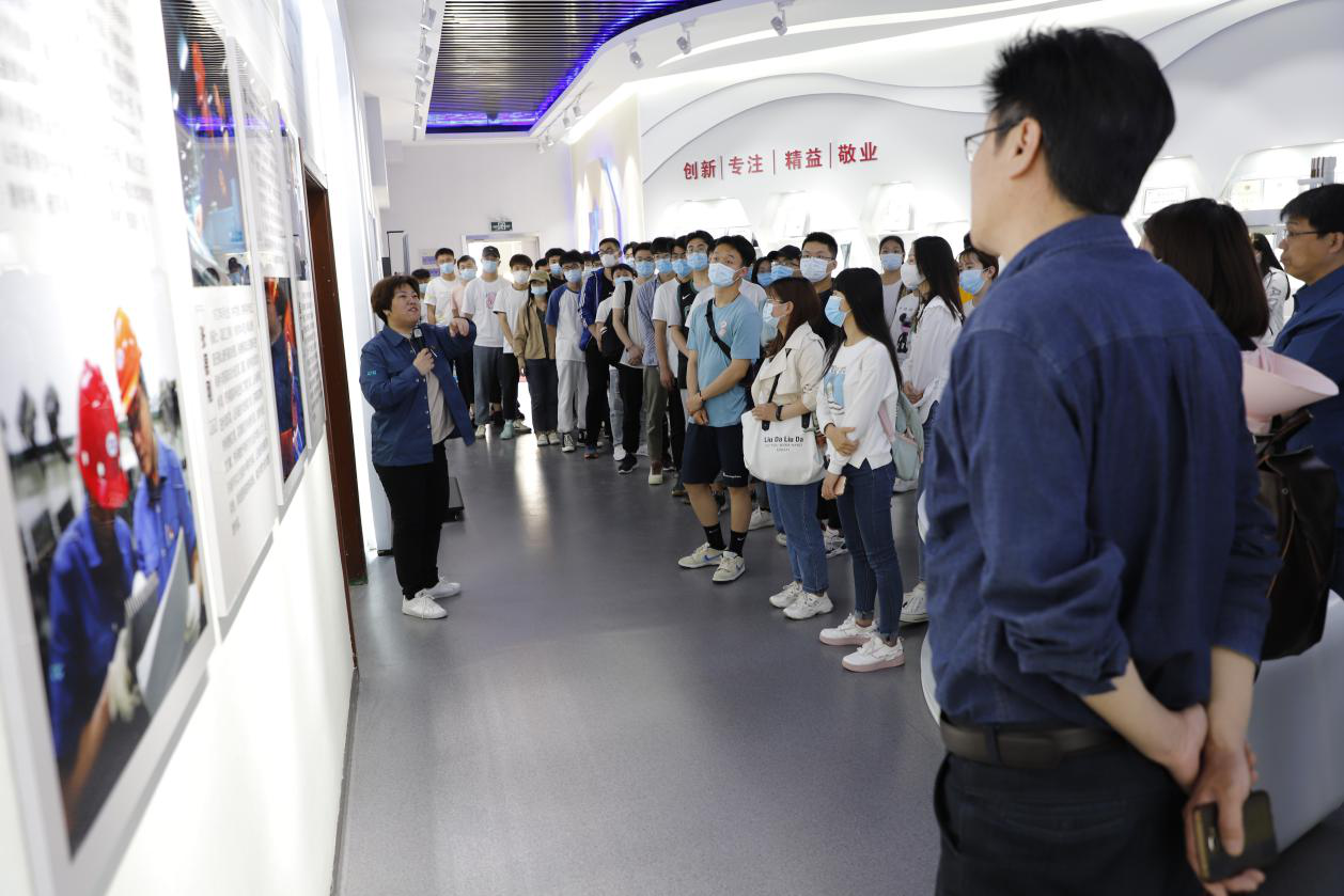 人力资源部部长赵丽为学生党员讲解技师工作站的发展历程