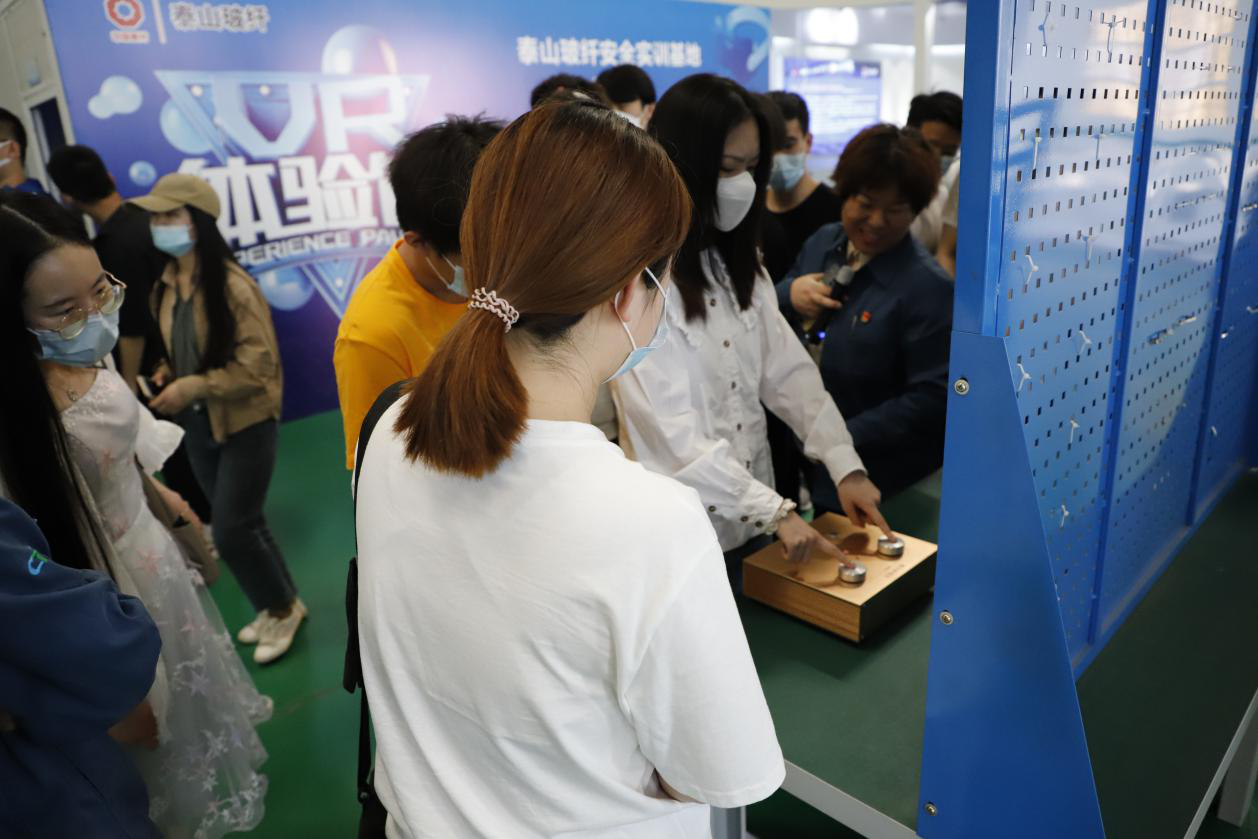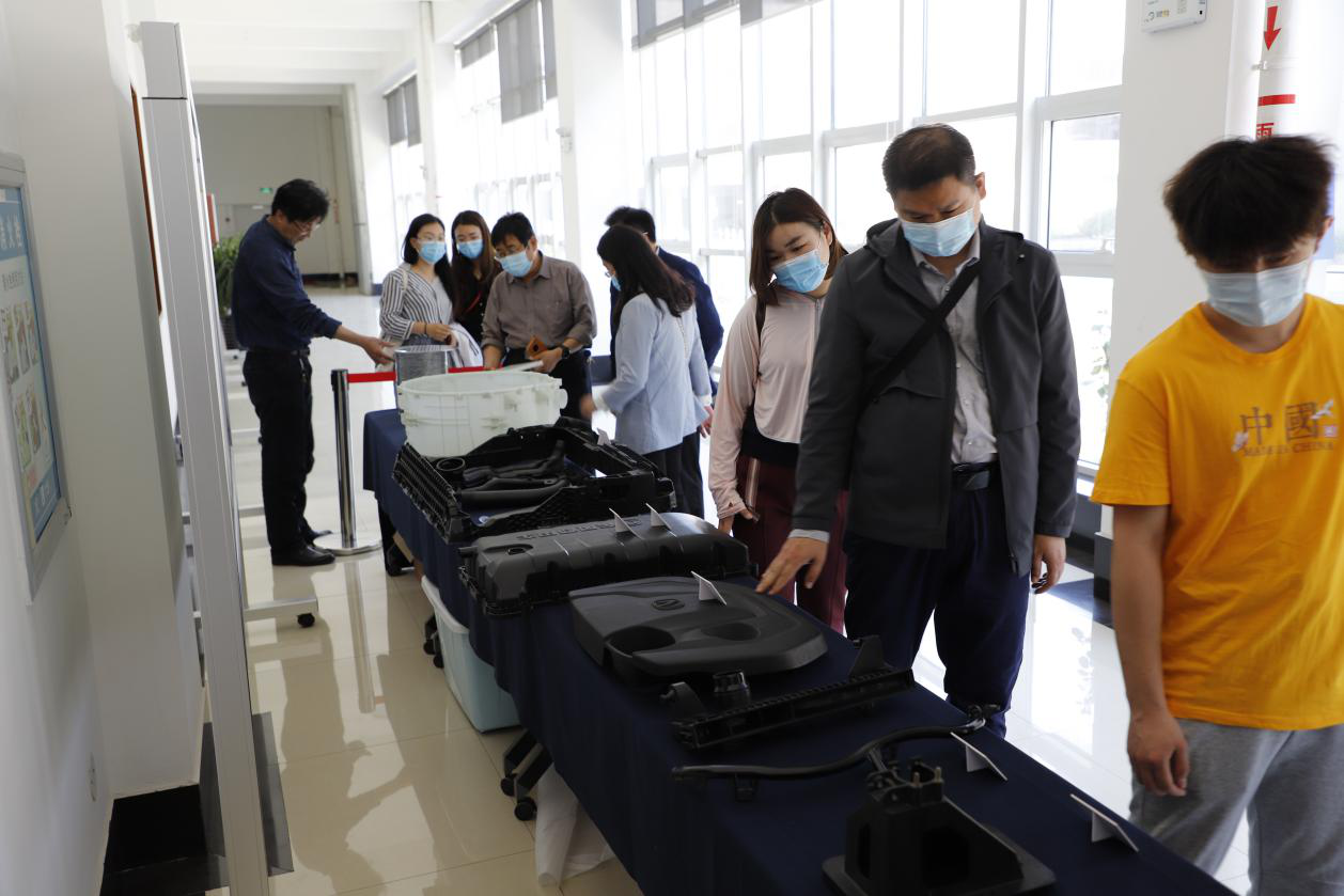 赵丽对智能装备学院交流团的到来表示了欢迎,带领学生们参观了技师工作站、实训车间和F03生产线复合材料实验室和党员活动室。随后,裴国栋一行和泰山玻纤领导在会议室召开交流座谈会。