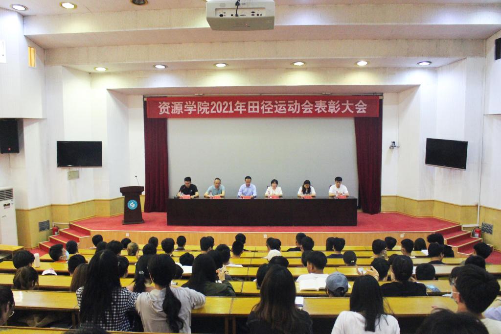 5月25日,资源学院在四号楼报告厅召开2021年田径运动会表彰大会。学院党委副书记兼副院长程家国、团委书记洒艳、学院辅导员张运忠、卢业美、学生会负责人姜自健出席大会。会议由学院辅导员王淦主持,学院运动员代表与学生代表参会。