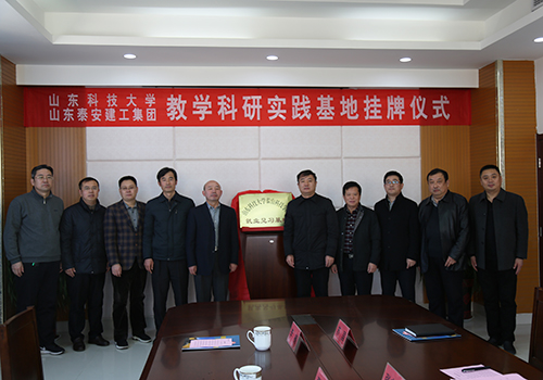 2017年12月16日,山东科技大学资土系与泰安建工集团共同举行山东科技大学教学实践就业基地揭牌仪式。泰安市建筑工程管理局局长王印林、泰安建工集团董事长亓玉政、总经理张东宁、系总书记戴东宝、主任贾宏俊等领导出席仪式。仪式由泰安建工集团总经理张东宁主持,贾宏俊、亓玉政和王印林分别做讲话。