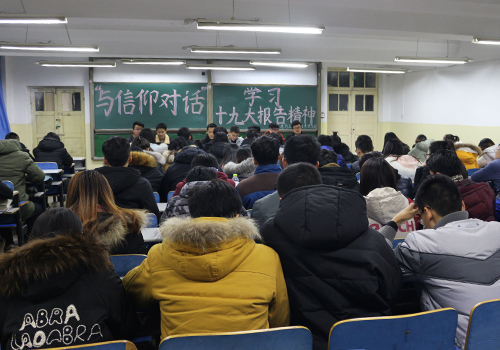 12月17日,资土系学生会举办“与信仰对话”--学习十九大报告精神座谈会,会议由资土系学生会主席侯立超主持,学生会全体干部参加。