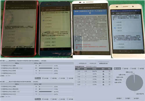 《信息工程系党总支举行学习十九大报告100题》手机截图和答题情况统计
