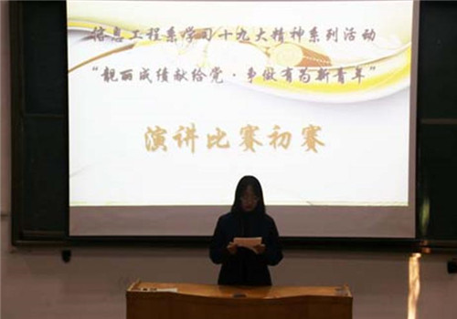 信息系团总支组织举办以“靓丽成绩献给党,争做有为新青年”为主题的学习十九大精神演讲比赛