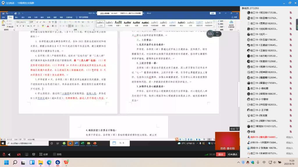 为确保学院秋季开学工作平稳运行,做好疫情期间教学管理工作,8月18日,智能装备学院辅导员召开线上视频会议,部署秋季学生开学返校和疫情防控相关工作,各班级学生干部参会。