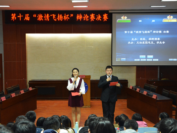 12月8日,由文法系团总支、学生会承办的第十届“激情飞扬杯”辩论赛在西校园模拟法庭落下帷幕。校区、学院团委老师侯静娴、文法系团总支书记郭涛林、资土系团总支老师鲁月、文法系团总支老师高山出席并担任评委。