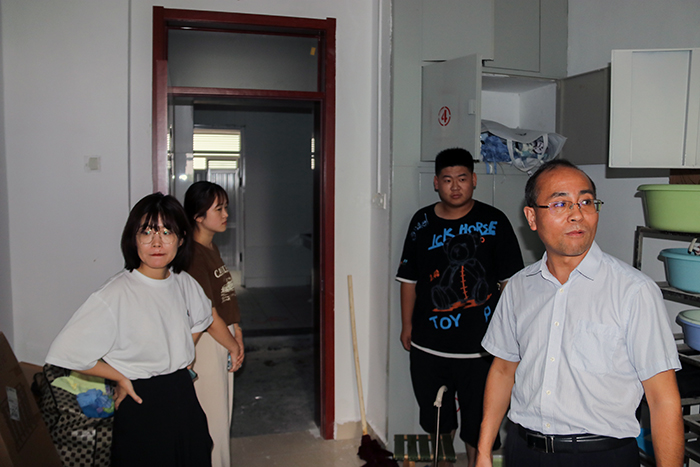 搬迁结束后,学院团委书记谢清勇、辅导员老师深入新入住宿舍看望慰问学生,全面检查了宿舍内部水、电、桌椅配置情况及宿舍区卫生,排查宿舍安全隐患,关切询问同学们学习和生活状态,鼓励同学们努力营造温馨整洁的宿舍生活环境,以崭新的风貌迎接新学期的到来。