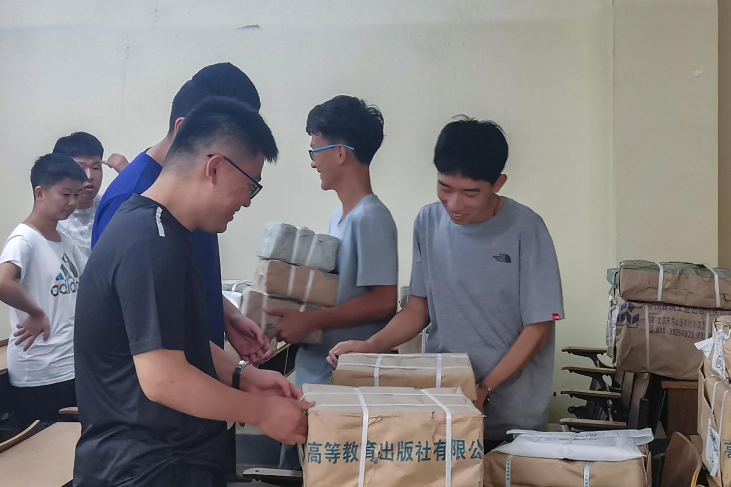 8月28日,资源学院教材发放工作在5#103、104有序进行。