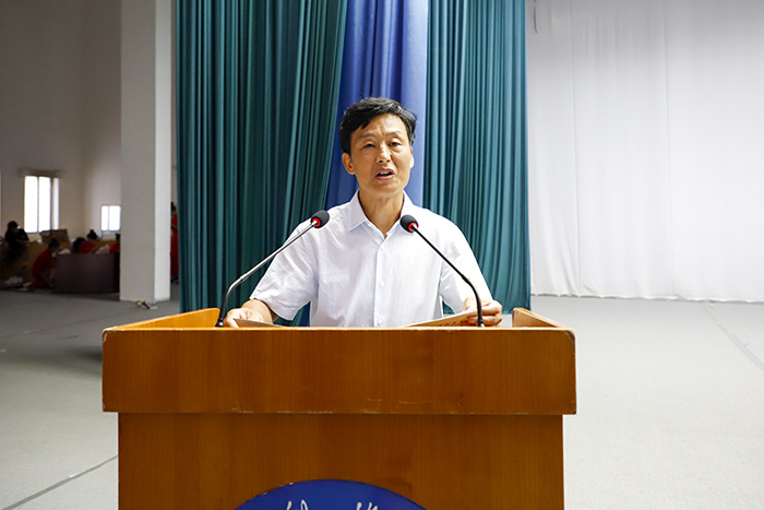 院长刘纪敏简要介绍了学校和学院的基本情况,并就“大学是什么地方”这一问题展开深入探讨,勉励新生一是要脱离依赖、树立独立意识,择善而从、理性稳妥、正确处理问题,同时又要培养集体意识,形成团队精神; 二是要学会自学、自立自为,把学习看作自己的事业和责任,将兴趣和专业结合起来,学会集体学习、共同学习、互相学习,提高学习效果,升华同学友谊。最后,刘纪敏将“徳之得、优之有、心之新、珍之真、智之至”十五字分享给新生。
