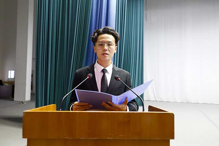 研究生导师代表田银花、班主任代表王鲁昆、研究生代表孙璞、在校生代表门煜楦、新生代表李金桥分别在会上发言。(文:李颖 图:王一鸣 王奇睿)