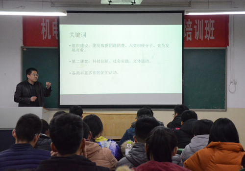 11月29日,机电系团总支周立志在3#204为各班团支部书记作“活力团支部创建”专题培训。
