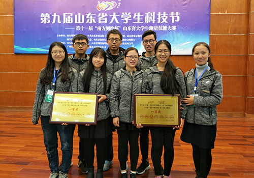 11月12日,第九届山东省大学生科技节暨第十一届“南方测绘杯”山东省大学生测量技能大赛在山东农业大学落下帷幕,经过激烈的角逐,资土系组成的参赛队伍(一队金明珠、董晓晗、蔡逾越和刘臻;二队郭丰杰、李艳茹、刘超和宋昱;指导老师于志刚、李迎)最终斩获2项一等奖,3项二等奖。
