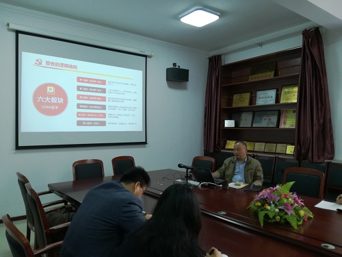 会上,张恩生从十九大基本概况、十九大报告主要内容、新党章(修正案)的主要精神、新一届中央领导机构、第十九届中共中央组织架构图等几个方面传达十九大、十九届一中全会精神。