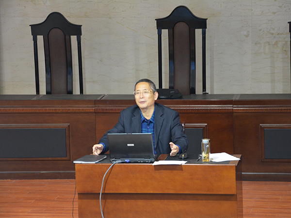 11月7日,文法系在模拟法庭开展学习宣传贯彻党的十九大精神系列辅导宣讲活动,系党总支书记马福泉以《十九大主题与新时代》为题做首场宣讲报告,全体教职工参加。