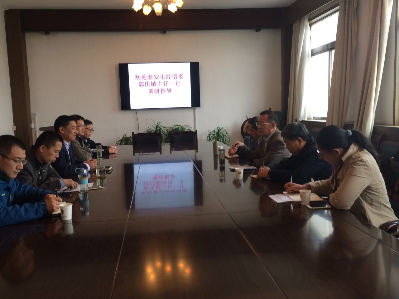 10月31下午,泰安市工信委副主任郭庆敏、总工程师张永祥、技装科科长刘宪杰、电子软件与信息服务业科副科长刘敏一行到校区机电系针对智能制造进行专项调研,机电系党总支书记兼山东省工业测控工程技术研究中心主任张建中,机器人与智能控制研究所所长宋庆军、机器视觉研究所所长张成元、博士后李东民、博士祝长胜等老师参加了专题调研。