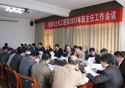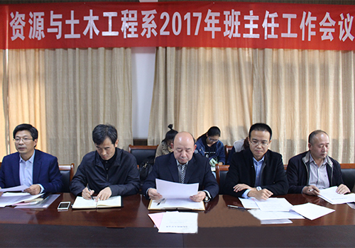 10月19日,资土系在201会议室召开2017年度班主任工作会议。会议由资土系党总支书记戴东宝、主任贾宏俊、党总支副书记兼副主任朱景星出席,全体辅导员、2016级及2017级班主任参加,资土系团总支书记程家国主持。