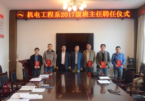 10月13日,机电系在会议室举行2017级班主任聘任仪式,系党总支书记张建中、主任刘然慧、党总支副书记殷永贵出席仪式。全体辅导员、2016级及2017级班主任参加。