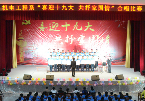 10月13日晚,机电系“喜迎十九大,共抒家国情”合唱比赛在大礼堂举行。校区学院学生处副处长韩子玉,机电系党总支副书记殷永贵,校区学院团委侯静娴,机电系团总支书记谢清勇及系全体辅导员观看合唱比赛。
