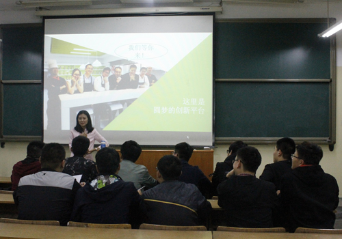 黄竑简要介绍公司的情况,并在现场对参加应聘的学生进行面试,共有四名同学与深圳铭基食品有限公司有签约意向。