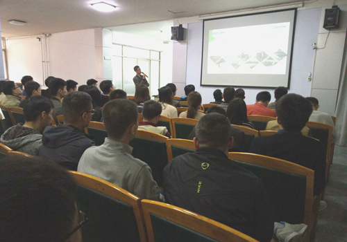 武金光介绍了公司的基本情况,对公司业务涵盖情况以及薪酬和福利待遇做了宣讲,公司给员工缴纳五险一金,实行岗位绩效工资制,并享有公休假、住房、交通、通讯、午餐等各类补助,待遇优厚。最后,公司招聘人员对有意向的同学进行面试,并欢迎有意向的同学们明年先去公司实习,加深了解。