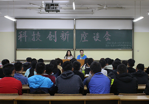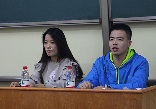 10月10日,资土系科技联合会在5#201举办科技创新座谈会,大四优秀学生代表王子安和董福瑞与同学们进行交流。