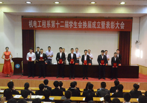 9月29日下午,机电系第十二届学生会换届成立暨表彰大会在四号楼报告厅召开。会议邀请机电系党总支副书记殷永贵出席,机电系全体辅导员,第十一、十二届学生会全体成员及各班主要班委参加。