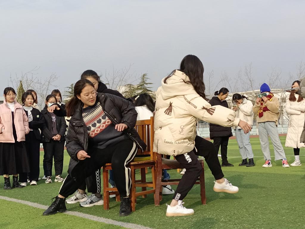 踢毽子、抢板凳、四人五足,环节逐个展开,比赛氛围也渐渐浓厚起来。在抢凳子环节,现场气氛一度达到高潮,伴随着音乐鼓点的开始与骤停,场上选手不断减少,抢到凳子的队伍欢呼声阵阵,遗憾下场的队伍同样笑意盈盈。四人五足环节中,展现了团队强大的凝聚力。活动最后,由志愿者对各队每轮积分进行统计,计算出活动的最终优胜者,在奖品发布后,各队伍进行合影留念。