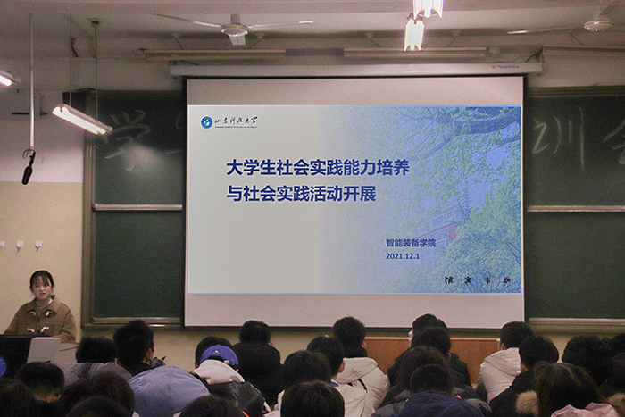 12月1日,智能装备学院于东校园5#104举办学生干部培训会(九),辅导员吕昊做了以“大学生社会实践能力培养与社会实践活动开展”为主题的培训会。2019级、2020级、2021级各班班长、团支书及组织委员参加培训。