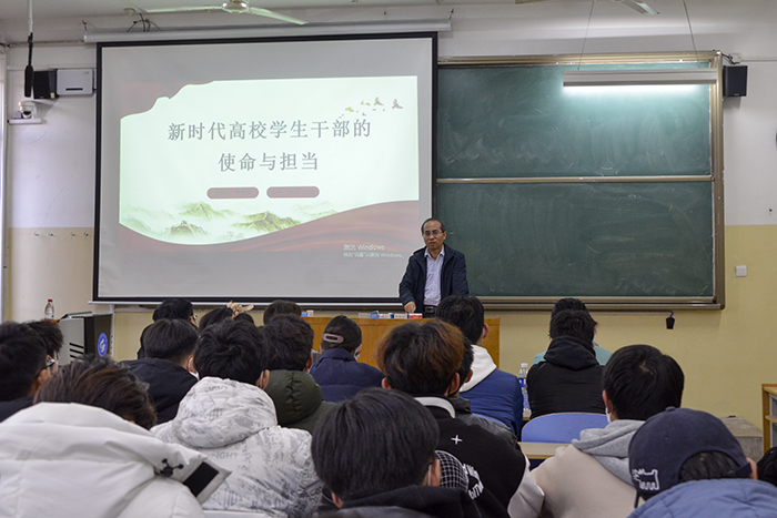 12月1日,智能装备学院于西校园2#106召开学生干部培训会(十),智能装备学院团委书记谢清勇做了题为“新时代高校学生干部的使命与担当”的主题报告,各班主要学生干部参加培训。