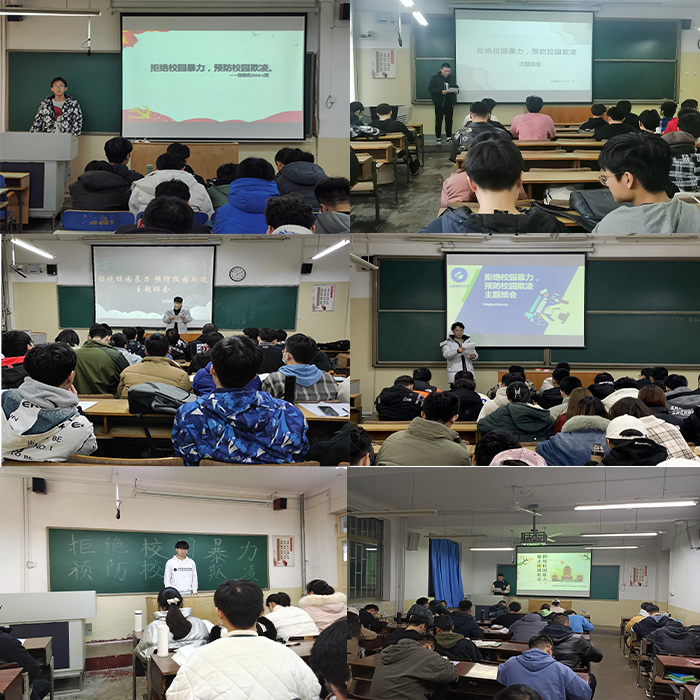 为进一步提高学生预防校园暴力的意识,加强学校安全教育管理工作,近日,智能装备学院各班召开校园防欺凌主题班会,班会由各班学生干部主持。