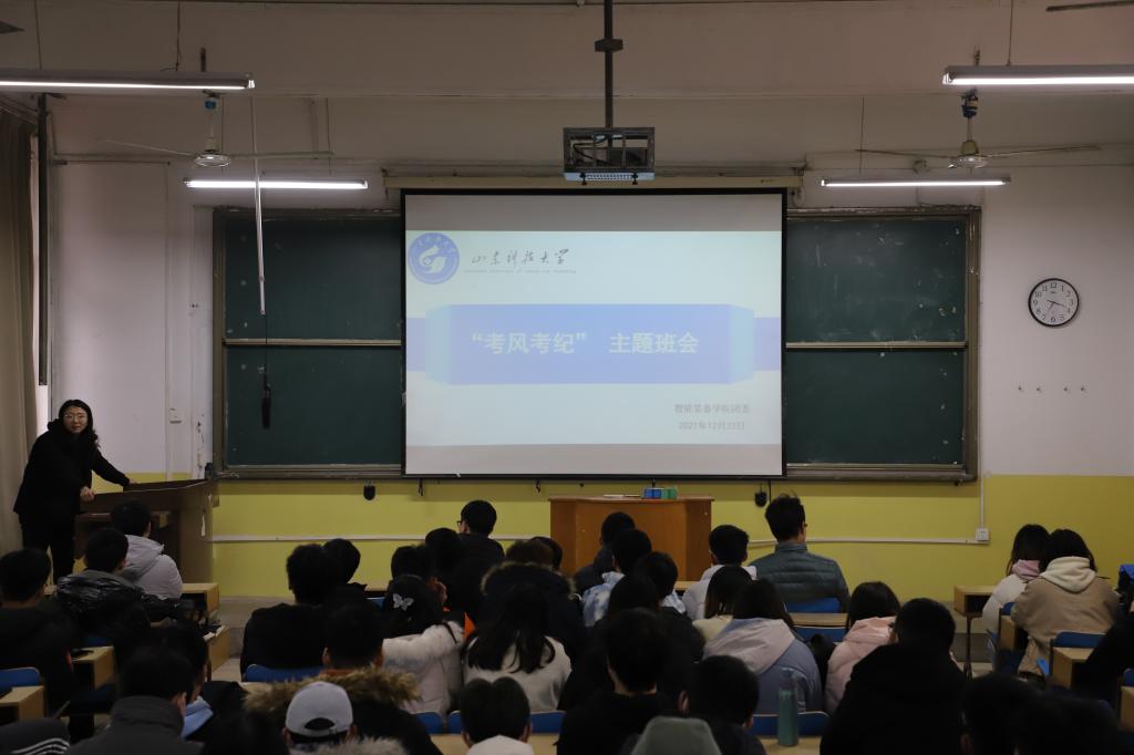 期末考试将近,为进一步严肃考风考纪,规范考试秩序,营造诚信考试氛围,12月23日,智能装备学院各年级召开考风考纪教育主题班会,会议由各辅导员主持,全体学生参会。