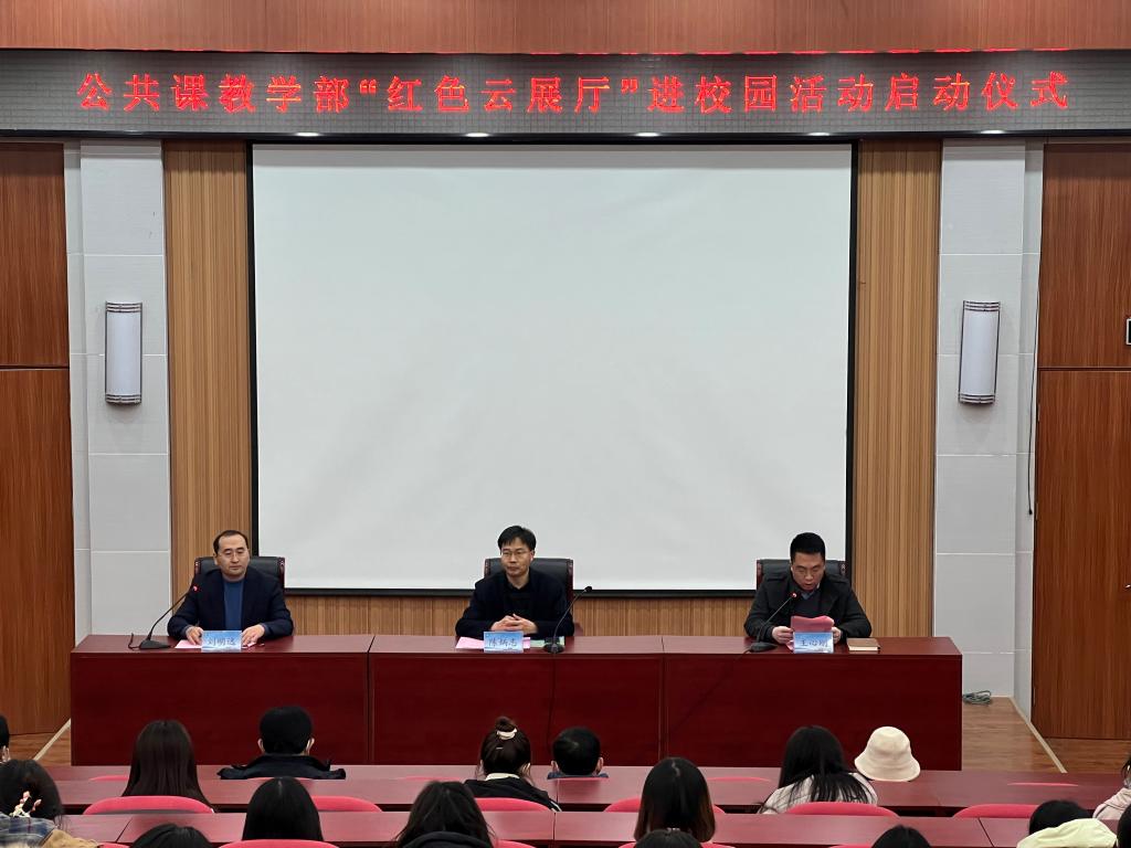 12月31日下午,公共课教学部在西校园八角楼举办“红色云展厅”进校园活动启动仪式。公共课教学部党委书记陈炳志、党委副书记兼副主任王心刚、党支部书记、思政课老师、各班班长、团支部书记、全体学生党员及学生会成员参加。启动仪式由学工办主任(团委书记)刘明远主持。