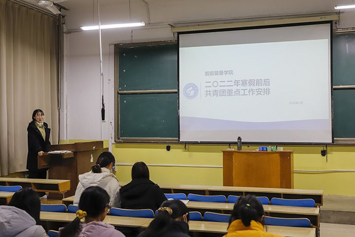 1月5日,智能装备学院于西校园1C102召开2022年寒假前后共青团工作会议,会议由学院辅导员孙丽、李明蔚、吕昊主持,2019级、2020级、2021级全体团支部书记参会。