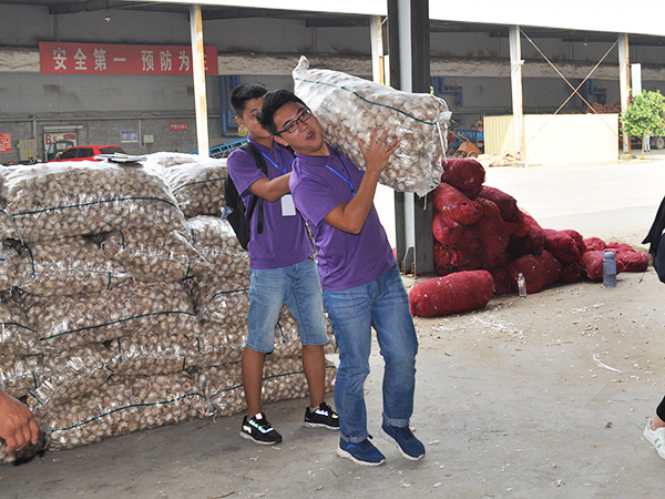 实践团的队员也亲自体验一把大蒜搬运工,他说:“看着不重,但真正扛起很重,这让我体会到工人的辛苦。”