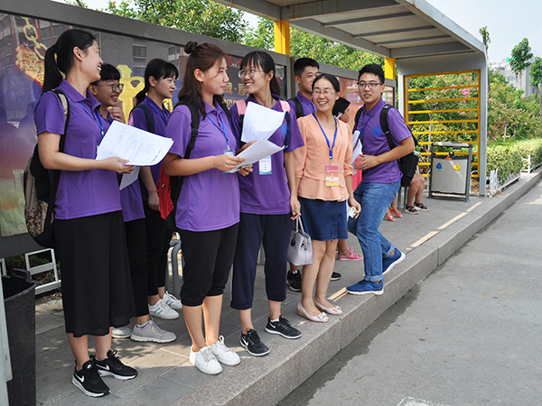 公交车站,实践团成员们的脸上都洋溢着笑容,他们内心里充满对调研之旅的期望。