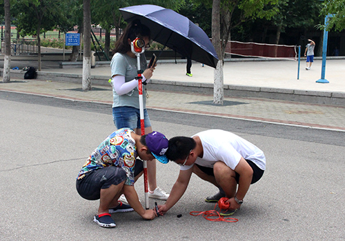 临近学期末,在校园内外总能见到这样一群人,他们顶风冒雨,不怕酷热,对着一组组仪器认真仔细地校对数据。让我们跟随他们的脚步,走近他们的世界,去一睹资土测绘人的风采吧!