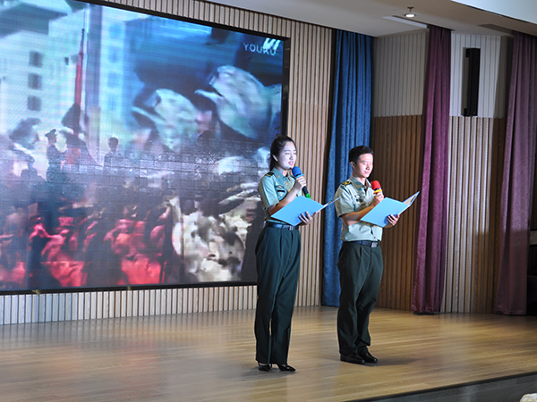 两人合作表演的节目是诗朗诵《强军颂》:“我们期待,能以自身之力助推祖国之崛起。我们坚信,能以自身之骁勇成就大国之梦想。”慷慨激昂的朗诵,振奋人心的伴奏,使在场人听得心潮澎湃,热血沸腾。