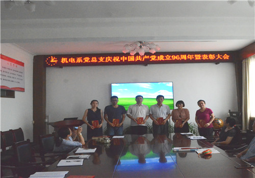 6月30日,机电系在系会议室举行庆祝中国共产党成立96周年暨表彰大会。系全体教工党员参加大会。大会由系党总支副书记殷永贵主持。