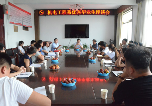 6月19日,机电系在系会议室召开毕业生座谈会。系主任刘然慧、系党总支副书记殷永贵、系副主任刘瑞国、娄淑梅,毕业生辅导员及16名优秀毕业生代表参加座谈会。座谈会由系团总支书记谢清勇主持。