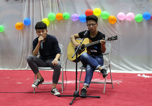 茶话会在舞狮社精彩的舞狮表演中拉开帷幕,伴随着阵阵鼓声,一头雄狮自观众席中昂首而出,上架、站立、眨眼,精彩绝伦的动作引得大家的阵阵惊呼。随后,语翼菁言思辩社与动漫社联合表演小品《劝架》,以其诙谐的语言,投入的表演,引得现场观众捧腹大笑;天空音乐吉他社带来的《民谣串烧》,使同学们沉醉在音乐的海洋中。最后,茶话会在同学们的欢声笑语中结束。(文:刘永康 图:李晓禾 编辑:时银娃)