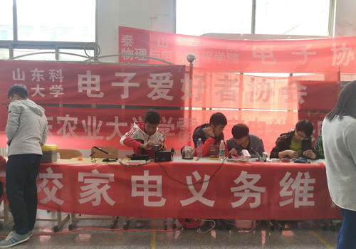 近日,机电系电子爱好者协会成员与泰山学院及山东农业大学科技社团成员在泰山学院举办联合义务维修活动。
