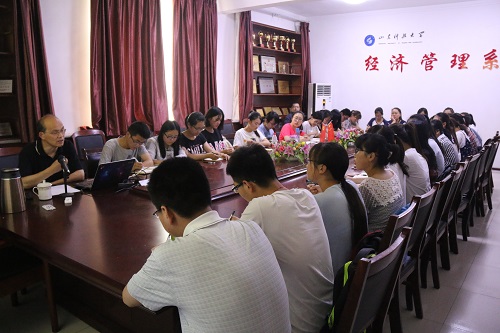 5月19日下午,校区党政办副主任孙善清受邀在经管系二楼会议室为“春笋计划”学员作新闻写作专题讲座,讲座由系团总支书记刘凯主持。