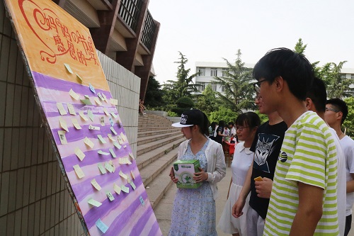 为弘扬中华民族传统美德,让更多的学生懂得知恩、感恩、报恩,5月14日下午,经管系大学生社会实践团在西校园礼堂广场举办以“浓情五月天,感恩献母亲”主题活动