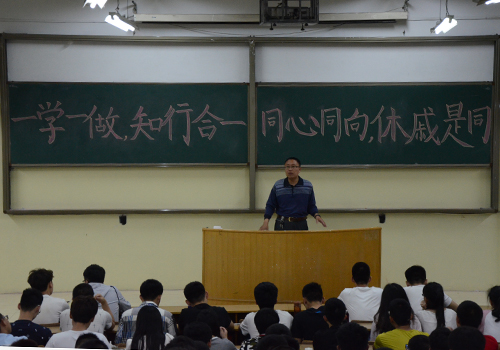 王衍国首先带领与会团员青年,学习5月3日习近平总书记考察中国政法大学时的有关讲话以及人民日报微信公众平台推送的《习近平对青年说的9句话》一文。接着,王衍国结合各团支部近期在安全、纪律、内务、学风等方面出现的问题与同学们进行交流。他指出近期的安全、纪律、卫生等六大方面出现的问题并提出建议。据悉,本次主题团日活动的主题之所以定为“‘一学一做’,知行合一;‘同心同向’,休戚是同”,就是要勉励团员青年按照习近平总书记的要求,树立与这个时代主题同心同向的理想信念,不断努力奋斗、勤学苦练,实现自己的价值,勇于担当这个时代赋予的历史责任。(文/图:周中原 编辑:周潇)