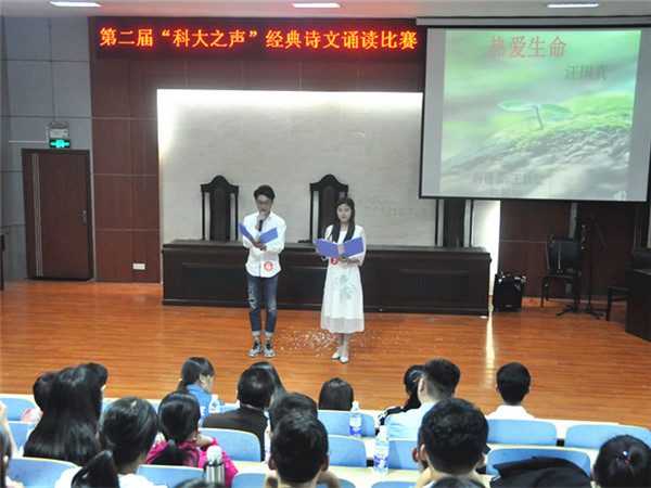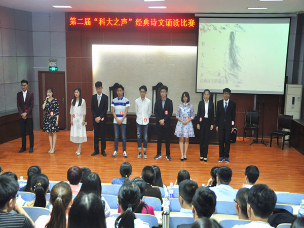 5月4日,由校区、学院团委主办的第二届“科大之声”经典诗文朗诵比赛在西校园模拟法庭举行。本次比赛邀请了泰安市广播电视台国家一级导演李传泰老师、大学生演讲朗诵协会指导老师陶庆萍等五人担任评委,文法系团总支老师及100余名学生参加。