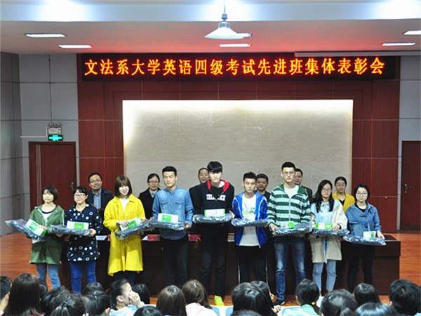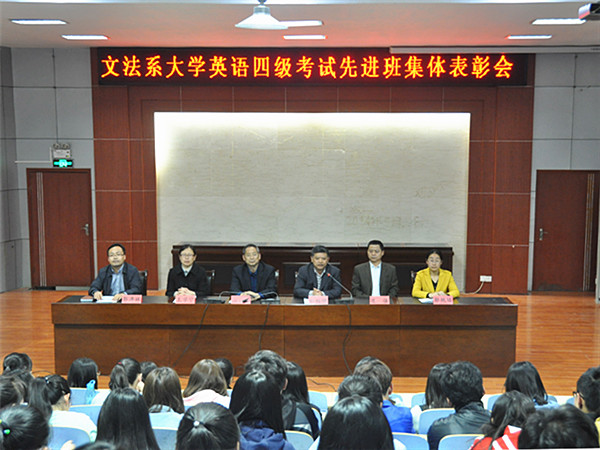 4月25日,文法系在模拟法庭召开大学英语四级考试先进班集体表彰会。文法系党总支书记马福泉、副主任王学宁等出席会议,党总支副书记兼副主任刘相明担任主持。