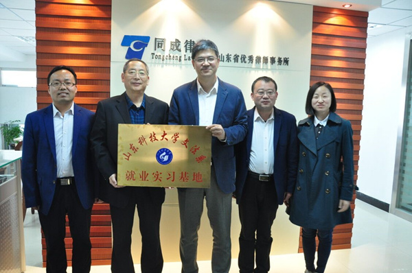 4月21日,文法系在山东同成律师事务所建立学生就业实习基地,同成律师事务所主任汪涛和文法系党总支书记马福泉出席签约挂牌仪式。