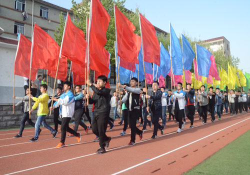 运动会将至,机电系彩旗队在校体育场紧锣密鼓的训练。