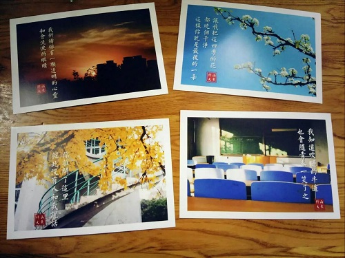 “咔嚓”“咔嚓”,是经管学子在用相机记录科大的风景。不久之后,又将有一批学生离开我们美丽的校园,依依之情,令人心殇。于是经管系几个学生组成团队,去发掘独特的校园风景,记录那些美丽的瞬间。然后,配上文字,制成了精美的明信片,聊以慰藉毕业生的心灵,时时用来回忆。