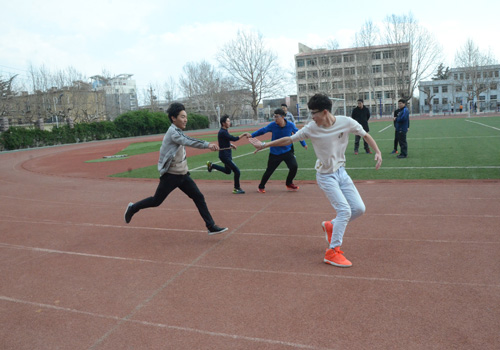 3月26日,机电系新闻中心在体育场进行运动会照片拍摄训练。